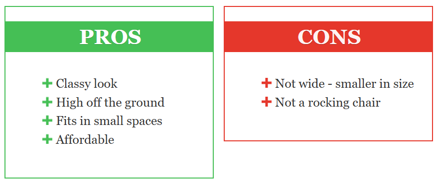 The main con of this one is that although it’s higher off the ground, it’s not wide and might not be the best option for the bigger guys out there. We think Rocky would be fine sitting here, but Ivan Drago would have a tough time. Also, it isn’t a rocking chair either which can be pretty annoying if that’s what you’re into.